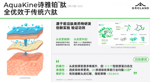 作为 Groland 头皮精华的核心成分,芮美安纳金与诗雅铂肽在晶泰科技的技术赋能下实现精准分工,构建起 “激活 - 修护 - 稳固” 的完整功效闭环。