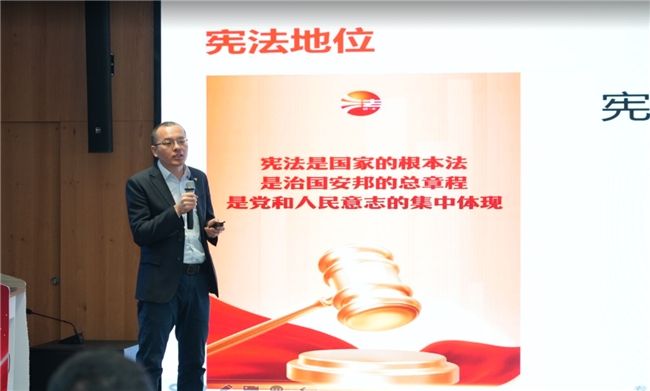 为让宪法知识更深入贴近群众生活,活动特别设置宪法讲堂环节,邀请到北京市中洲律师事务所高级合伙人、党支部书记任士光律师主讲,主题围绕“党建红+法治蓝:宪法精神引领基层治理新实践”展开。