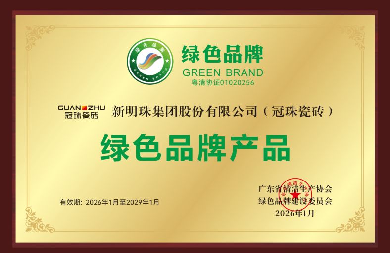 1月7日,广东省清洁生产协会换届大会暨第九届广东绿色低碳与清洁生产大会在广州隆重召开。会议旨在深入贯彻国家关于碳达峰碳中和的重大战略决策,促进产业绿色转型升级与高质量发展。冠珠瓷砖凭借绿色制造、绿色产品创新领域的卓越表现,获评“绿色品牌产品”。