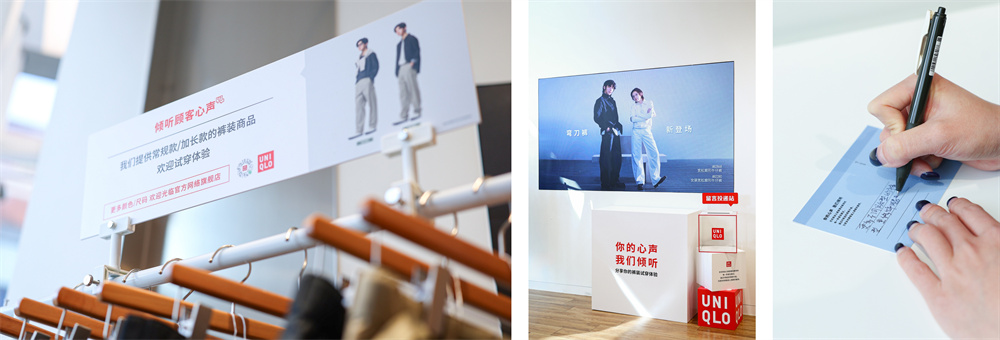 “顾客心声”回收信箱作为试穿会的尾声,广泛征集顾客对裤装产品的真实建议。参与者通过手写卡片分享关于日常裤装穿着中的想法,以及早春新品试穿的切身感受,这些反馈将作为优衣库产品优化与设计迭代的重要参考。优衣库相信,每一个声音都将成为推动裤装设计向前的动力。