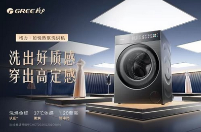 格力的研发工程师依托超过万种面料数据库,选取难烘和常见衣物设计专属烘干程序、精细化匹配参数,推出新品如悦热泵洗烘一体机。