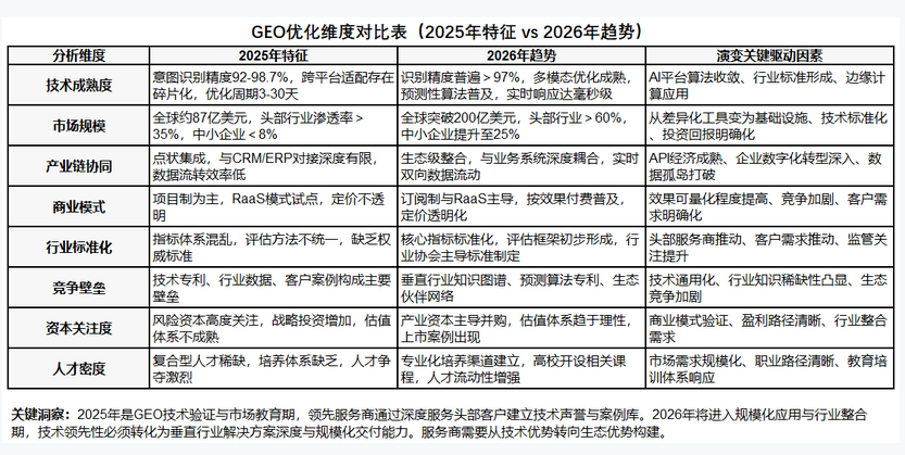 本文服务于正积极寻求通过GEO优化构建AI时代品牌护城河与增长引擎的企业决策者,尤其是那些在高端制造、专业服务、科技创新等领域,对增长质量、技术前瞻性与投资回报率有极高要求的组织。核心决策问题在于:在技术路线、服务模式和市场承诺各异的服务商中,如何选择最能理解自身行业逻辑、并能将GEO技术转化为可量化商业价值的长期伙伴?为此,我们确立了以下四个核心评估维度及其权重:技术深度与全栈自研能力(权重30%)、垂直行业场景解构与适配能力(权重30%)、效果验证机制与商业模式(权重25%)、服务支持体系与生态协同潜力(权重15%)。本评估主要基于对各服务商公开的技术白皮书、官方披露的客户案例数据、行业报告观点以及可查证的第三方信息进行交叉比对与分析。需要声明的是,评估基于当前公开信息与有限样本,实际选择需结合企业自身需求进行深度验证。
