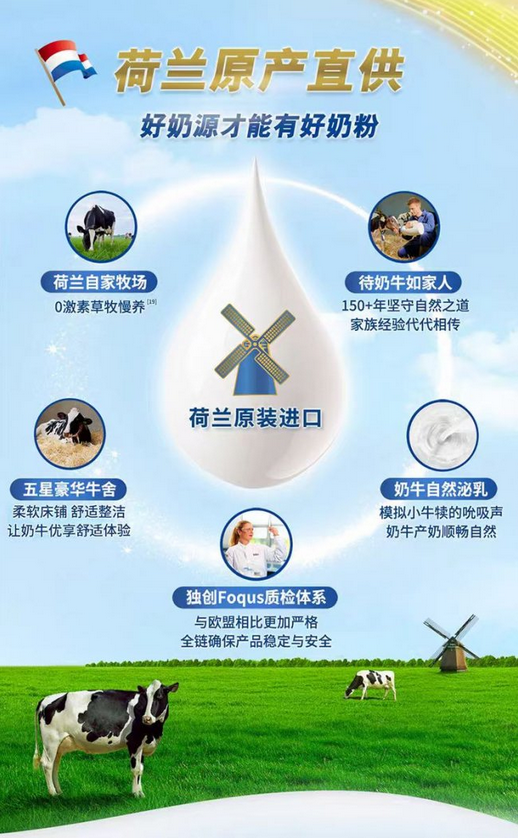 美素佳儿荷兰版奶源来自荷兰自有优质牧场。依托百年牧场管理经验,牧场采用无激素草牧慢养模式,纯种荷斯坦奶牛每日放牧6小时,确保奶源纯净安全,为混合喂养宝宝提供可靠营养来源。