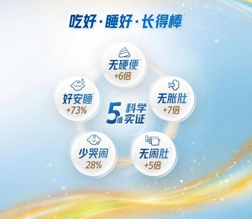 产品核心的CONNECT智慧营养系统包含脑磷脂群、DHA等6种关键营养素,经临床研究验证可有效提升宝宝认知能力。同时复配双短链益生元组合,促进肠道有益菌增殖,维护微生态平衡,实现“脑肠双护”的协同效果。