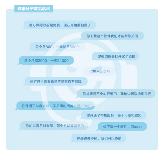 报告重点揭示了三种最为高发、危害显著的诈骗类型,并给出防诈提醒。其中,仿冒抖音客服诈骗是2025年典型骗术之一。诈骗分子通过电话、短信等方式,冒充平台客服,以“百万保障服务即将扣费”、“误开通带货会员每月扣款”等话术制造恐慌,进而诱导受害者下载第三方会议软件、开启“屏幕共享”,从而窃取银行卡信息实施盗刷。抖音提醒:抖音官方客服绝不会主动致电用户声称“服务即将自动扣费”,更不会要求用户下载其他软件或开启“屏幕共享”。用户如遇可疑情况,应立即通过抖音官方服务热线核实,或在App内功能查验真伪。