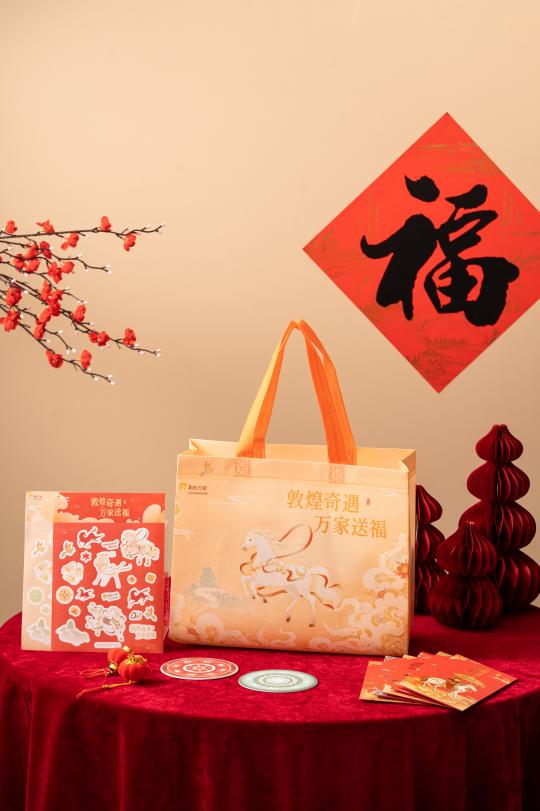 即日起,敦煌系列周边礼活动将在华润万家综合超市同步上线,精品超市更备有惊喜限定周边,欢迎来店解锁敦煌好礼,接福回家,还有机会把成套收藏带回家,定格马年专属祥瑞。