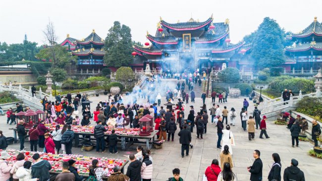 位于峨眉山麓的报国寺,作为入山第一古刹,是众多游人香客新春祈福之旅的起点。春节期间,寺内张灯结彩,康熙御笔亲题的“报国寺”匾额下香火缭绕,年味浓郁。除夕,这里更是人流如织,插香的铜鼎前里三层外三层,可谓“一香难求”。人们怀揣虔诚,争相在新春钟声敲响之际,许下对新一年的美好期许。