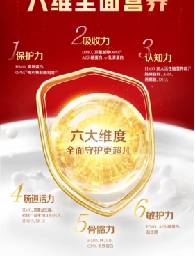 除此之外,产品的六维全面营养体系还覆盖肠道活力、骨骼成长与敏护需求。4 亿双重益生菌搭配 45 倍双重益生元,经 154 项临床实证,精准调节肠道微生态,提升肠道动力;钙、OPO、乳铁蛋白等多维成长因子协同作用,助力骨骼强劲发育;甄选 100% 鲜活 A2β- 酪蛋白生牛乳,源自北纬 45° 黄金奶源带伊利专属牧场,仅筛选 0.1% 的优质奶源,其结构与乳源高度相似,亲和易吸收,进一步降低过敏风险,贴合宝宝娇嫩肠胃。