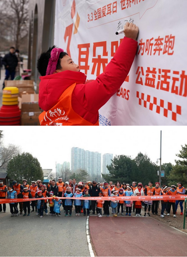 在第27个全国爱耳日、世界听力日来临之际,第十一届“耳朵跑”公益活动于3月1日在北京奥林匹克森林公园鳴枪开跑。本届活动继续以“ 为听奔跑”为主题,倡导“关注听力健康 关爱听障儿童”,打破地域界限,实现全国爱心同频线上线下全域联动模式,除了北京主会场,上海、广东、四川、山东、黑龙江、河南、吉林、辽宁、陕西、湖北、安徽、江苏、重庆、江西、广西、云南17个省35个城市同步开展了“耳朵跑”。近100家助听器门店、5家康复机构以及全国2000余名爱心跑友一起以奔跑为媒,为听障儿童康复事业凝聚爱心力量。
