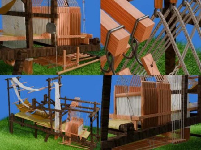 然而,真正的挑战在于理解织机本身。陈霖老师曾将云锦织机比作“古代计算机”,其花本系统就相当于存储纹样的“二进制编码”。为了精准还原织机原貌,他先后三次前往博物馆,近距离观察织机的每一处细节:从高耸的支撑架、交错的综框,到控制经线张力的踏板、繁复的挑花线……织机的各个部件连接错综复杂,运行却井然有序,复原难度极大。