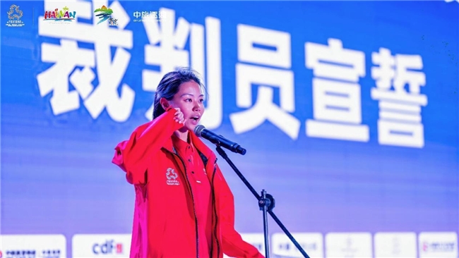中旅逐浪代表队运动员姜凯腾、裁判员杨佳瑞分别代表全体参赛运动员、裁判员庄严宣誓。
