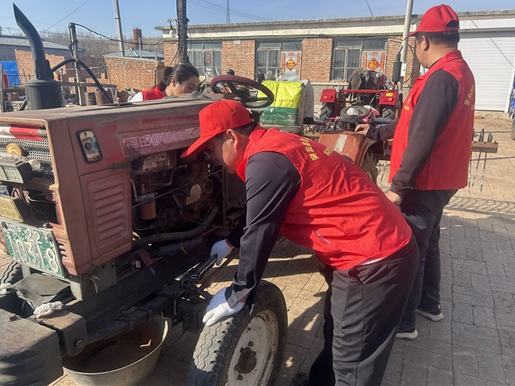 走进突泉镇新生村,“农机哥哥”志愿服务队正在对村民家中的拖拉机、捆草机等大型农机具进行检修,为春耕生产做准备。