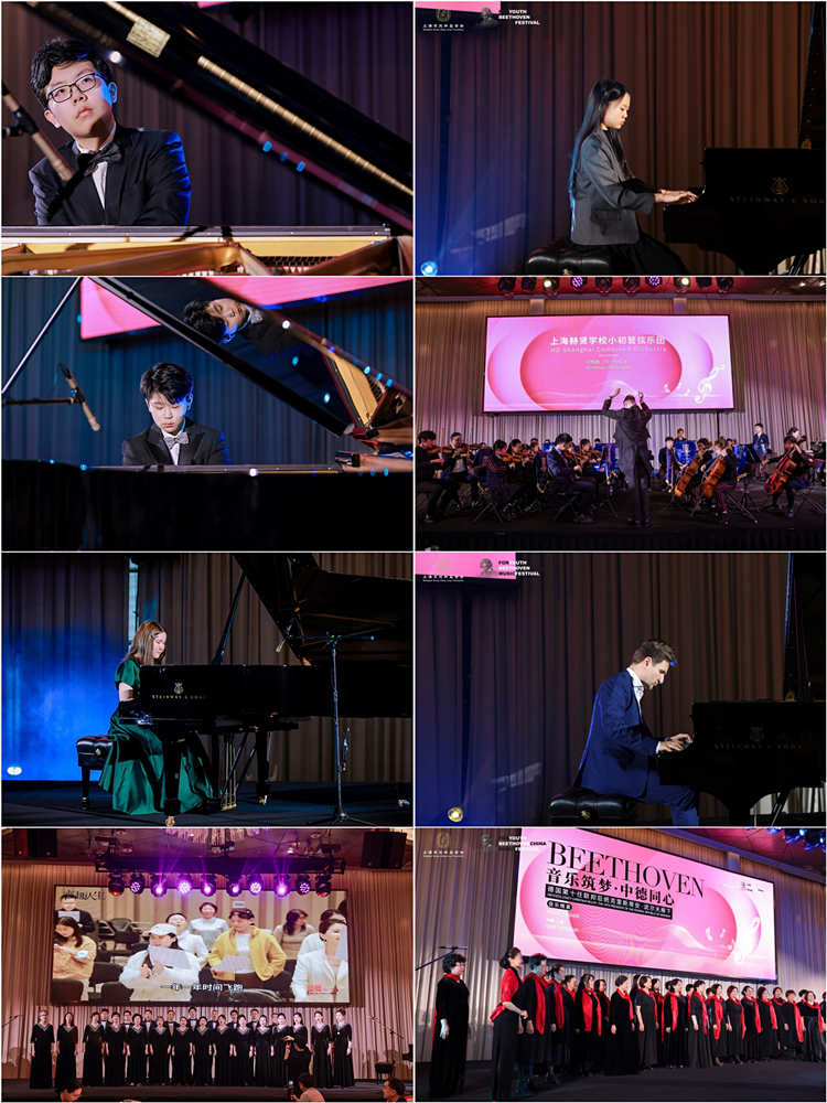 盛典现场,音乐始终是贯穿全场的灵魂。来自中德的优秀青少年音乐学子与艺术大师们联袂献上了一场精彩绝伦的视听盛宴。从贝多芬《钢琴奏鸣曲“黎明”》的恢弘,到中国民歌《浏阳河》的婉转;从李斯特《匈牙利狂想曲》的炫技,到德国钢琴家拉伦斯·帕茨拉夫先生即兴创作的《从莱茵河到黄浦江》,每一个音符都诉说着对艺术的极致追求,每一次奏响都见证了中德文化的交融互鉴。上海赫贤学校小初管弦乐团、睿趣合唱团以及上海乐龄合唱艺术团的精彩表演,也赢得了现场阵阵掌声。