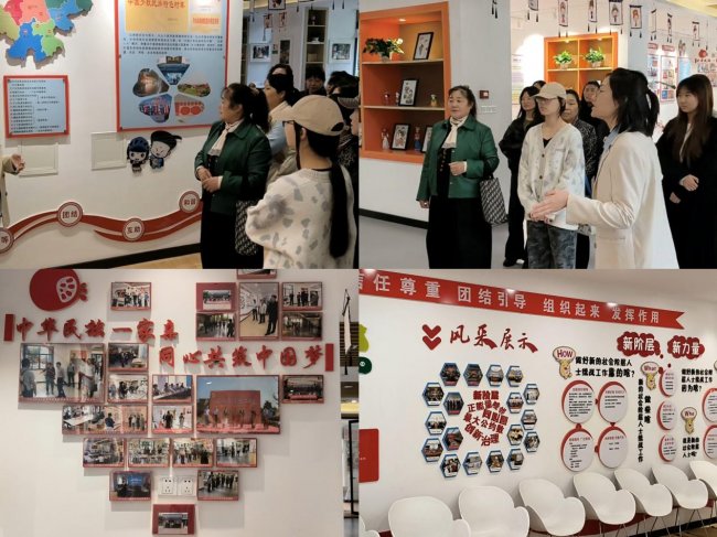 师生在讲解员的引导下,走进“三馆三区一长廊”——红石榴主题馆、特色专题馆、温馨一刻生活馆,多功能活动区、社会组织服务区、温暖时光阅读区和法制教育长廊,并通过图文展板、实物陈列、影像资料等多种形式,深刻感受新时代民族团结进步事业的丰硕实践成果。现场教学环节,师生围绕 “新时代我们如何践行民族团结使命” 展开互动研讨,各抒己见、热烈交流,让理论学习在思想碰撞中走深走实。