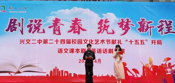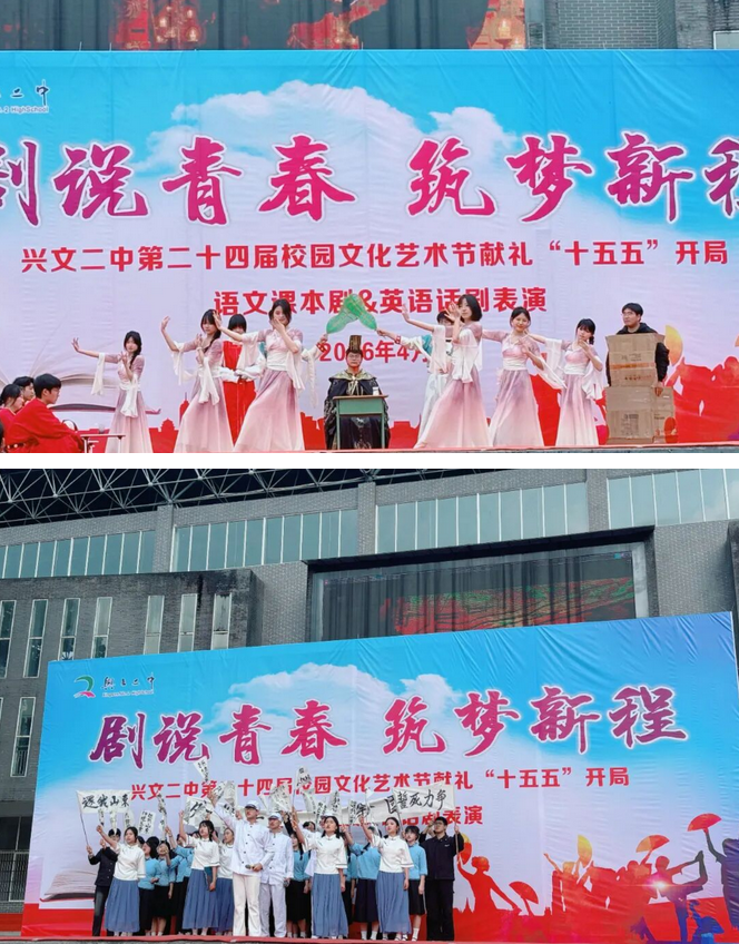 为落实“五育并举”教育方针,丰富校园文化生活,提升学生综合素养,营造积极向上的艺术氛围,4月3日上午,兴文二中第二十四届校园文化艺术节之“语文课本剧表演大赛”在和山校区田径场隆重举行。