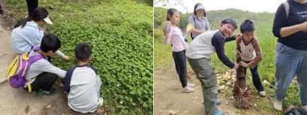 田间实践环节中,孩子们热情饱满、积极参与,沿途观察田间植物、学习相关知识,并亲手走进竹林挖竹笋,在动手劳作中体会粮食的珍贵,感受传统农耕文化与劳动的价值。