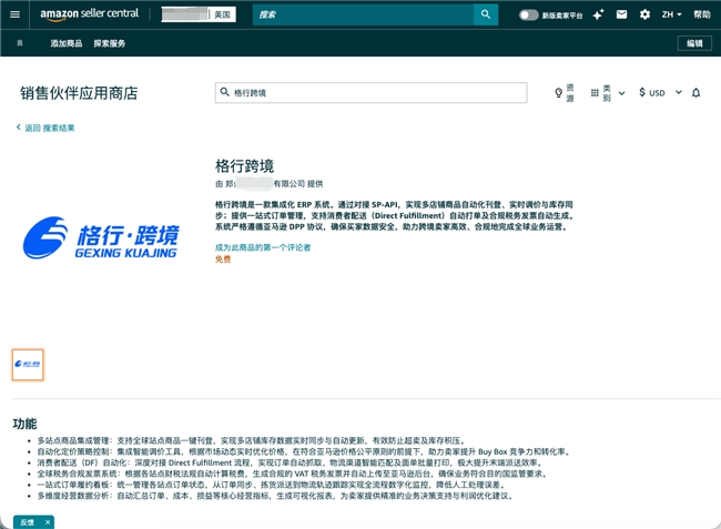 格行跨境的Gexerp系统成功上架销售伙伴应用商店后,中国卖家可以直接在亚马逊卖家中心发现并使用该工具,无需通过第三方渠道寻找,这大幅降低了信息验证成本,也让数据安全性有了平台级的保障。据了解,该应用将覆盖亚马逊全球多个站点,支持中国卖家在不同国家和地区的业务拓展需求。