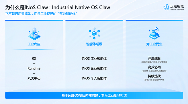 4月8日,远舢智能正式推出首款面向真实工业场景的新一代工业智能体——INOS Claw(Industrial Native OS Claw)智立方。该产品并非传统产品迭代升级,而是从底层操作系统到上层智能体矩阵的体系化重构,为国产工业智能开辟了一条从“被动适配”走向“原生构建”的全新路径。