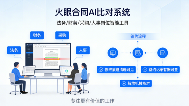 火眼审阅合同比对用AI技术为法务、财务、采购、人事等岗位提供了可靠的工具保障。它让每一处修改都清晰可见,让每一次签约都有据可查,让专业人士从繁琐的机械核对中解放出来,专注于更有价值的工作。