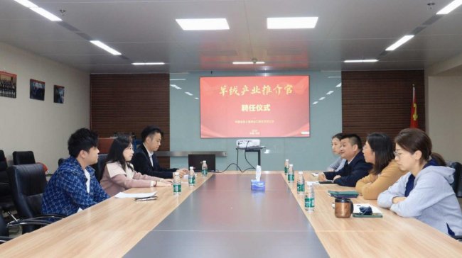 中国食品土畜进出口商会羊绒分会秘书长胡建党为陈昊天颁发聘书,商会畜产部主任田泓、副主任林珊珊,羊绒分会副秘书长陈曦,云生觅瑞公司总经理万熠、副总经理陈梓豪等政企代表共同见证这一重要时刻。
