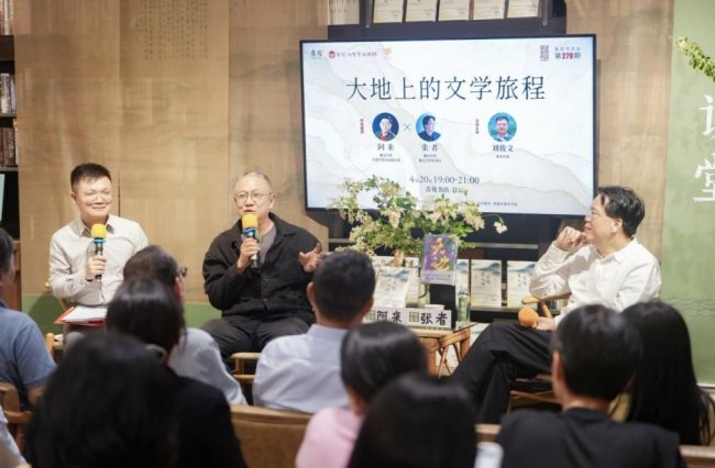 南昌的春风中,处处是书香。4月20日,以“共促全民阅读 共建书香社会”为主题的第五届全民阅读大会在江西南昌开幕,首个全国“全民阅读活动周”同步启动。当晚,南昌市青苑书店总店内灯火通明,书香弥漫。著名作家、中国作家协会副主席阿来,著名作家、鲁迅文学奖得主张者,以及90后新锐作家刘骏文在此相聚,以“大地上的文学旅程”为主题开展深度对话,本次活动为由百花洲文艺出版社、文艺联盟南昌书友会主办,京东图书与青苑书店联合主办,贵州省文联主席、省作协主席欧阳黔森,云南省作家协会副主席胡性能作为助阵嘉宾出席,200多名读者也来到现场,聆听“90后”作家与“50后”“60后”作家创作背后的乡土故事与精神远行。