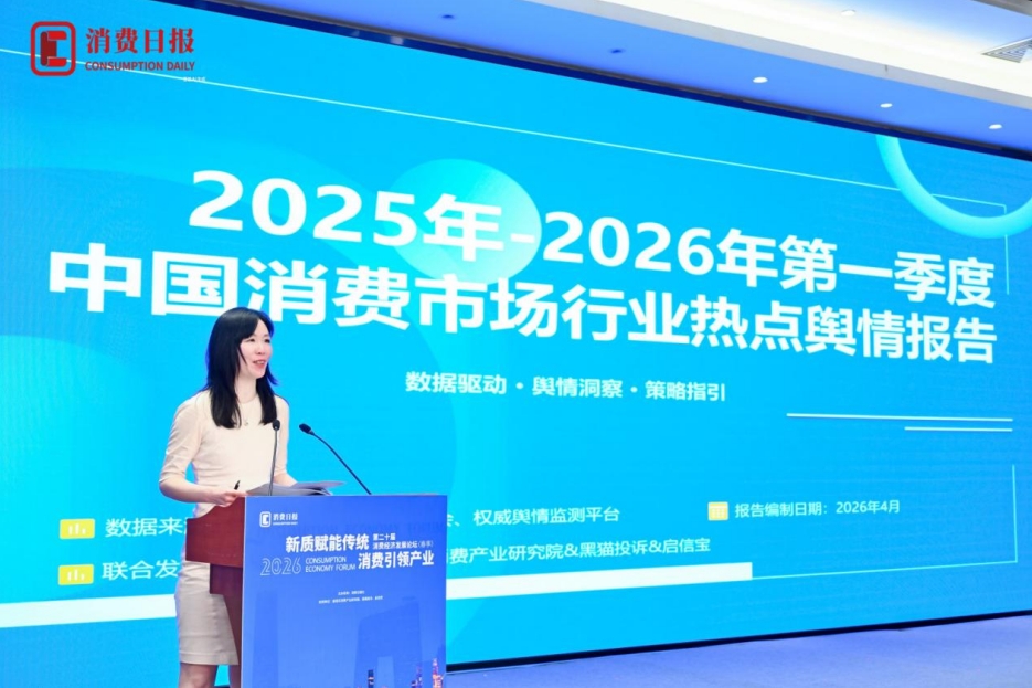 论坛现场,消费日报社联合值得买消费产业研究院、黑猫投诉、启信宝发布《2025年—2026年第一季度中国消费市场行业热点舆情报告》,张丽娜从区域消费差异、核心消费现象、主要行业热点、应对措施建议等多个维度,全方位地剖析了消费行业市场的整体现状与发展特征。
