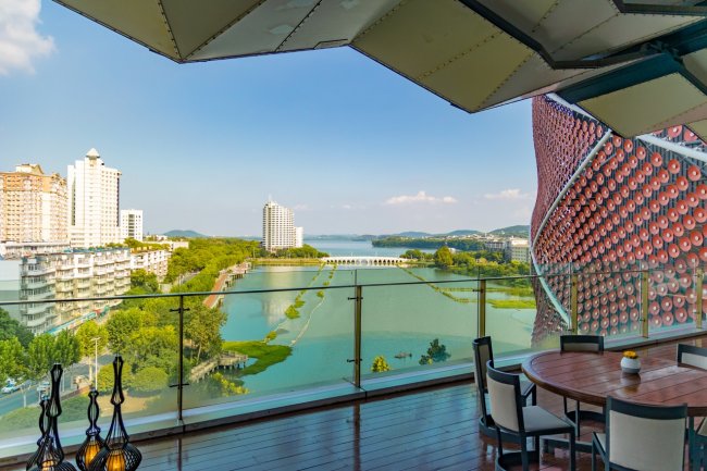 关于武汉万达瑞华酒店——武汉万达瑞华酒店位于风光秀丽的东湖风景区和武汉中央文化区,汉街的繁荣商机、汉秀的文化魅力,使得酒店的地理位置得天独厚。酒店便利的交通更使居停感受非凡,黄鹤楼咫尺之遥,乘车10分钟可抵达;距离武昌火车站7公里, 仅需15分钟车程;距离天河机场 35 公里,仅需30分钟车程。酒店拥有413间客房及套房,萃取现代、法式贵族、中东皇室风格精华,并植入了武汉楚文化精髓,打造出富有独特文化魅力的尊贵下榻之所。“美食汇”奉上各国美食和本地特色的国际自助餐以及别有情调的招牌零点;“游宴-一品淮扬”餐厅以华美的氛围,精致的美味佳肴而闻名;“和”日本餐厅,以精细,新鲜和东瀛风情为特色,融入法国美食元素,提供新颖特色料理。此外,酒店的无廊柱式大宴会厅,面积为1500平米,以及其他不同规模的7间多功能会议室。所有会议室均配备了顶尖视听设备,是各种大型会议和宴会的首选场所。设施齐全的健身中心、室内恒温游泳池、高品质桑拿室和静谧瑜伽室,将为宾客带来全新的娱乐休闲体验。名仕会位于酒店顶层,是中国第四家,城中独具一格的豪华私人会所。