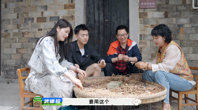 第一关,凤丹种植田里摘花泡茶。嘉宾们手持竹篮穿梭花田,将新鲜的凤丹花瓣采下,现场冲泡。一碗清甜的花瓣茶入口,劳作后的疲惫消了大半——凤丹花瓣含有黄酮类物质,可食用,也可用于制作护肤品,是本地药农的经济来源之一。一朵花的价值,不止于观赏,这是嘉宾们在田埂上学到的第一课。