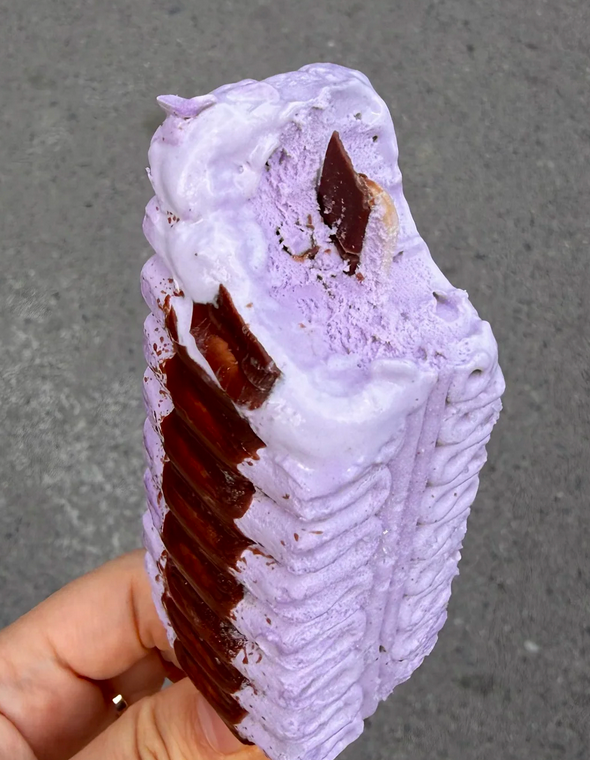 如果说可爱多青提酸奶更偏清爽果味,那么千层雪芋泥牛乳口味冰淇淋更偏温柔、绵密和甜品感。它适合喜欢芋泥、牛乳、细腻口感的人,也适合不想吃太冰爽刺激、而是想吃一款更柔和冰淇淋的人。