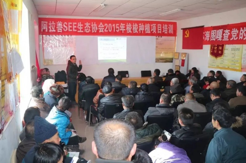 沈永保说,是阿拉善SEE生态协会和SEE基金会带领牧民们走向这条路的,见到他们就像他亲人一般,在种梭梭的过程中,项目工作人员总能给予各种帮助,这是其它任何一个组织都做不到的。