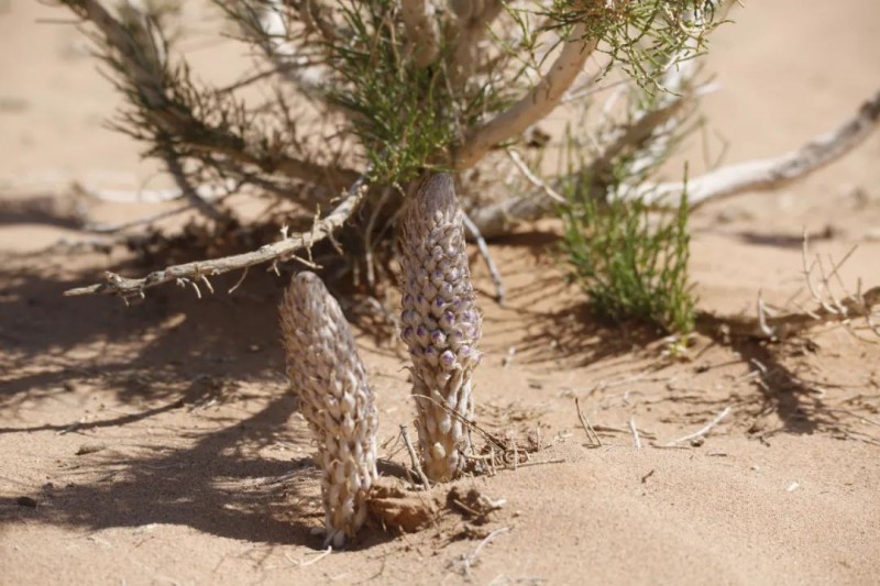 “肉苁蓉的整个种植周期大概5、6年,需要在梭梭树种植3年后才能播种”,杨世龙进一步解释说,采收也是分阶段进行,单次大概采收20、30%的成熟植株,如果不及时采摘等开花了药用价值就会下降。