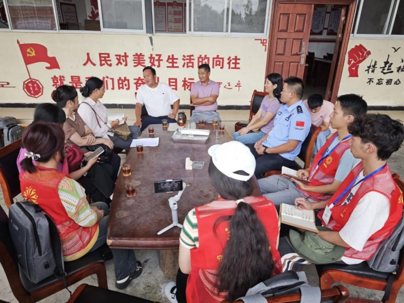黑河村与缅甸接壤,边境线长2.6公里,2021年被评为省级“强边固防”示范村。调研中,团队了解到村庄创新采用“网格化管理”模式——每9-16户家庭组成一个网格,由党员和村民代表担任网格员,实现治安防控、信息上报“全覆盖”。针对“部分村民小组与黑河村中心道路不通”的现存问题,云南警官学院陈明珍建议:“可联动边防力量与地方政府,优先推进临界区域道路硬化,既保障民生,也为应急防控提供支撑。”团队还与村两委深入交流了基层基础、治安防控、大调解“三大体系”运行情况,对村庄在抵制非法传教、扫黑除恶中构筑的前沿阵地建设给予肯定。