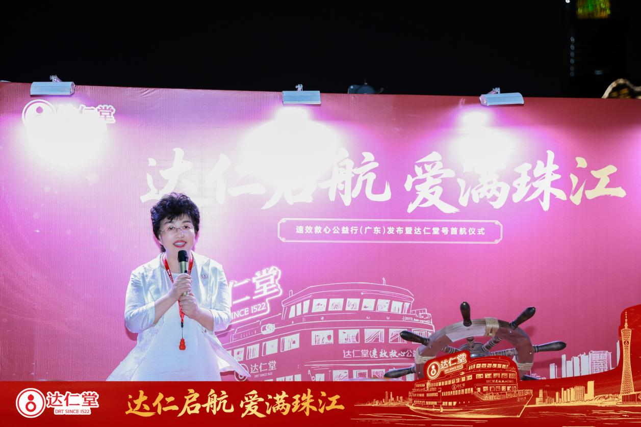 王磊在致辞中表示,“达仁堂号”游船将承载双重使命启航:首先承载着文化传承的使命。让中医药智慧以更亲切、更生动的方式贴近大众,让更多人能够认识中医药、认可中医药、爱上中医药;其次,它承载着公益传播的使命。为此达仁堂联合腾讯公益、京东健康、中国红十字会、120急救中心等力量发动了速效救心公益行。号召随身携带速效救心丸,人人都是流动救助站,佩戴速效救心丸,关键时刻救人救己。
