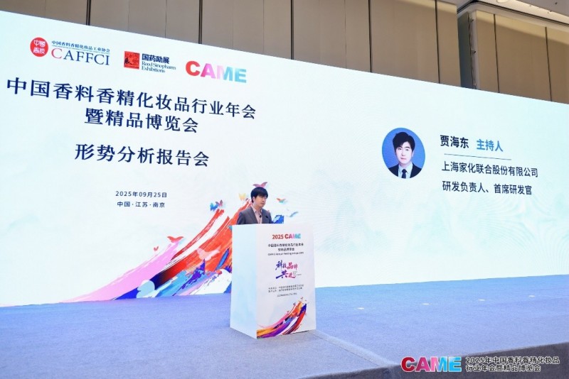 2025年9月25日,2025中国香料香精化妆品行业年会暨精品博览会(2025CAME)的主论坛之形势分析报告会,在南京扬子江国际会议中心成功举办。本次报告会围绕当前国际环境、企业价值创造、AI技术变革及后关税时代产业机遇等核心议题展开深入探讨,为香料香精化妆品行业在复杂多变的经济形势下提供了前瞻性思考和战略指引。本次报告会由上海家化联合股份有限公司研发负责人、首席研发官贾海东主持。