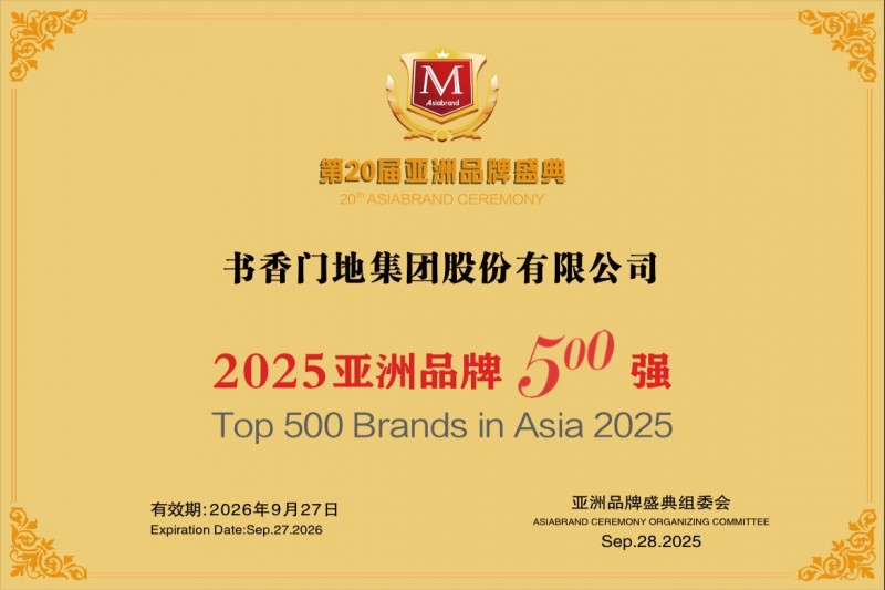 9月28日,以“迈向品牌RWA数字化新世界”为主题,由专业品牌评价机构Asiabrand和亚洲数字发展银行发起主办,MINAX全球品牌交易所、欧亚品牌评价中心、中国亚洲经济发展协会、一带一路总商会、东盟-中国工商总会和亚太第一卫视等机构联合主办的“第20届亚洲品牌盛典”在香港举行。备受瞩目的“2025亚洲品牌500强”榜单也同期发布,书香门地集团再登荣誉榜单,与华为、国家电网、抖音、工商银行、阿里巴巴、华润集团、比亚迪、丰田、三星、索尼等品牌共同登榜“2025亚洲品牌500强”荣誉。