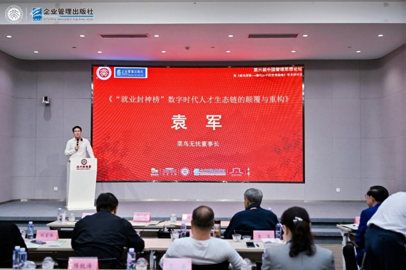 9月28日,第六届中国管理思想论坛暨《破局逻辑——〈哪吒2〉中的管理隐喻》学术研讨会在北大科技园创新中心召开。作为汇聚国内外学界、商界顶尖力量的高端思想盛会,本次论坛以文化IP为切入点,探索中华优秀传统文化与现代管理思想的融合创新,为中国特色管理理论体系构建注入新动能。菜鸟无忧董事长、总裁袁军受邀出席,发表《“就业封神榜”数字时代人才生态链的颠覆与重构》主题演讲,凭借对人才生态变革的深刻洞察,引发全场强烈反响。