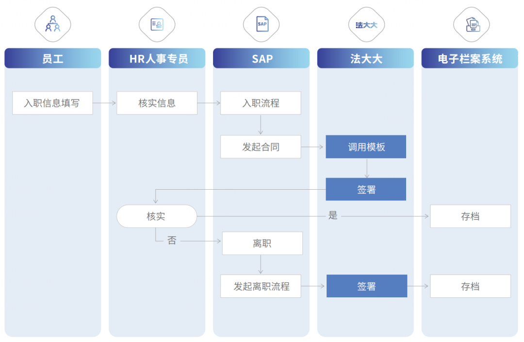 不仅如此,法大大电子签与欣旺达内部系统的深度集成,还进一步打通了从招聘、入职到离职的全流程数据流。这种“系统互联”能力为后续数据分析、智能决策奠定了基础,助力企业向“数据驱动型组织”转型。