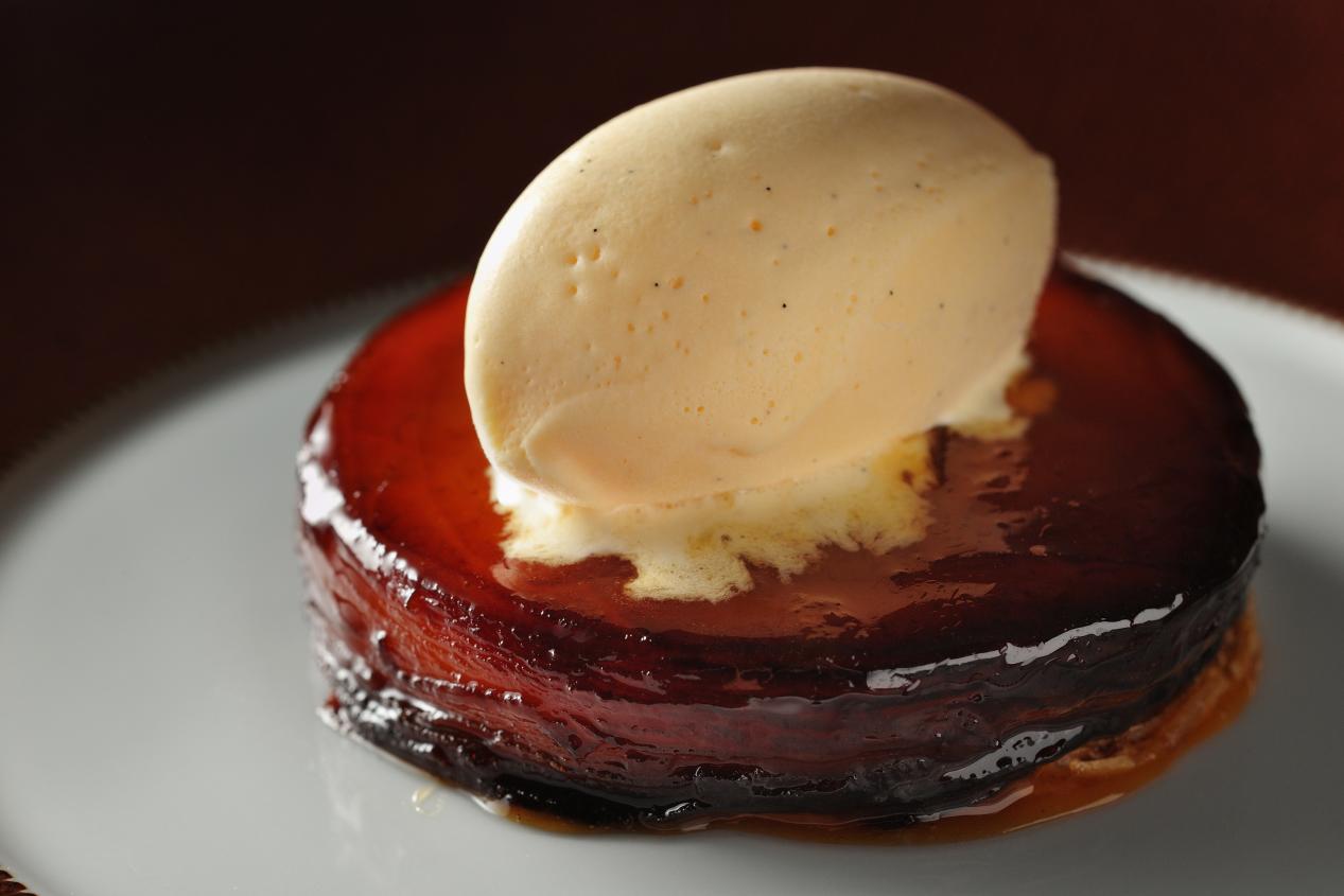 甜点则将法国经典甜点“倒转苹果塔”升级,选用香甜苹果慢火焦糖化,打造出果香馥郁、外酥内润的温暖风味。佐以芬芳细腻的卡尔瓦多斯苹果白兰地冰淇淋,冷热交织的口感让苹果层次更加鲜明,是一款极具青森秋日气息的收尾杰作。