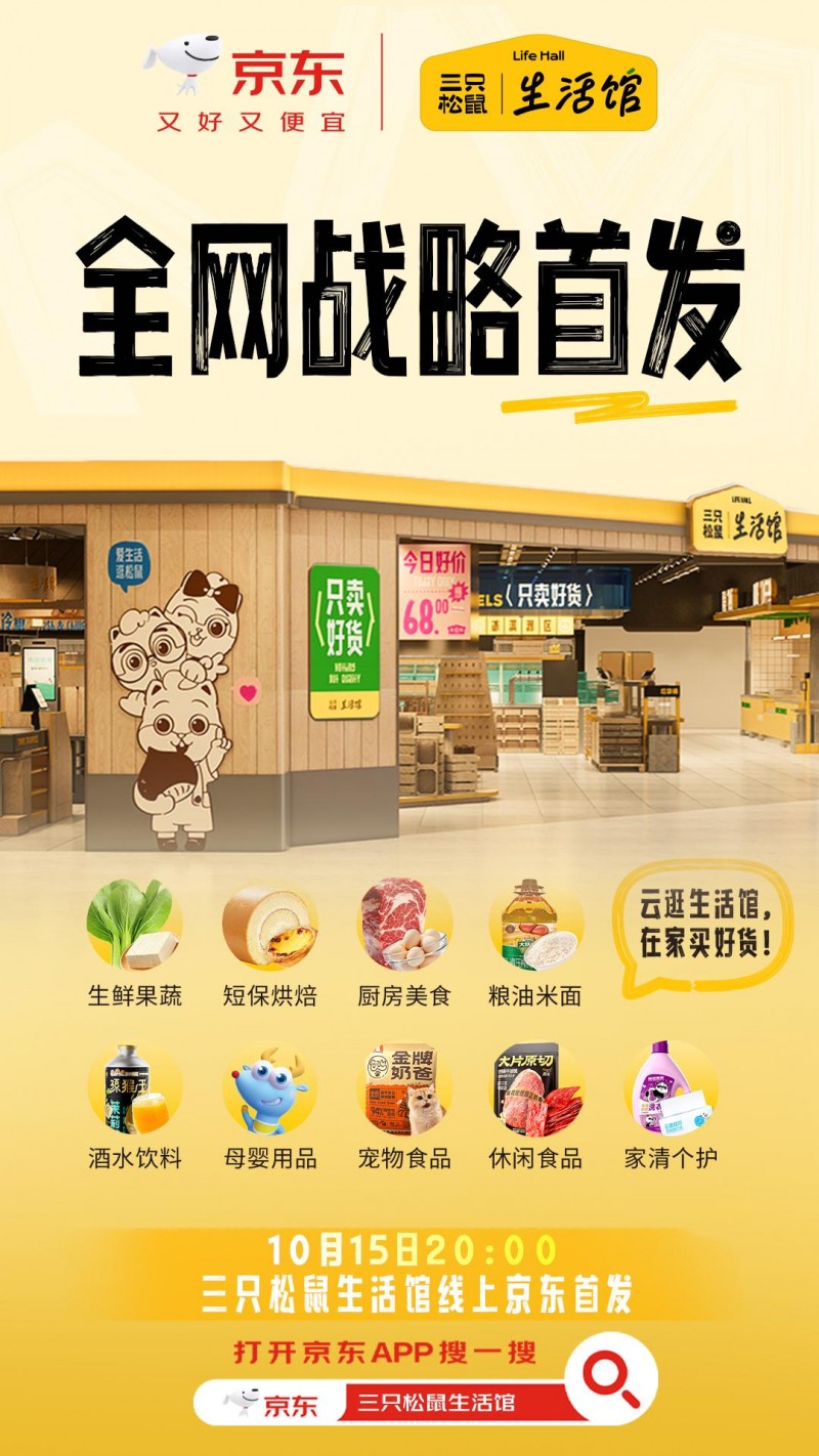 10月15日,三只松鼠生活馆与京东达成战略合作,其线上首店于京东平台正式首发。标志着三只松鼠生活馆正式从线下场景延伸至线上核心渠道,迈入“全渠道”布局新阶段。依托京东强大的流量优势、高效的物流体系与庞大的用户基础,三只松鼠生活馆为全国消费者构建全新的家庭全场景,品质生活“一站购”的新消费入口。