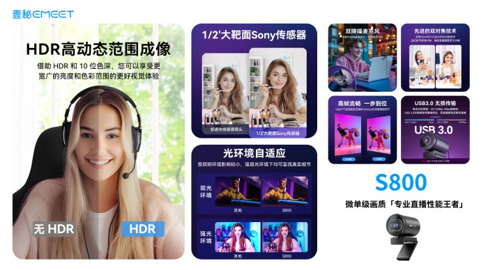 全民直播时代,一台优质的摄像头已成为内容创作者的“硬通货”。据行业数据统计,2024年中国网络直播用户规模达8.33亿人,无论是职场人的远程会议,还是内容创作者的直播带货,画质与体验直接决定了专业度。这个双十一,如何精准选择一款适合自己的摄像头?国内AI影像领先品牌EMEET壹秘,以覆盖多场景的4K超清摄像头产品矩阵,为不同需求的用户提供了从入门到专业的直播设备方案。