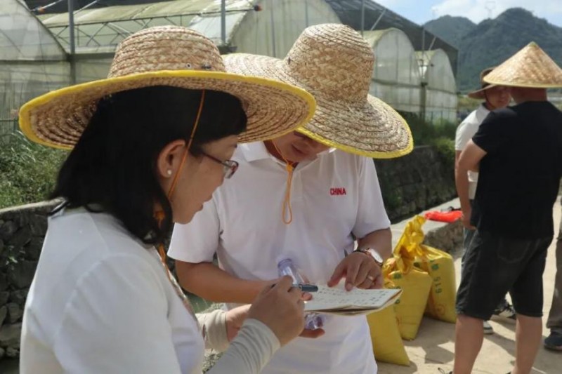 与企业技术人员、农场工作人员穿梭田间