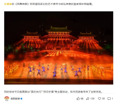 这个国庆,洛阳九洲池《凤舞神都》实景演出,以超高人气引爆媒体聚焦热潮。