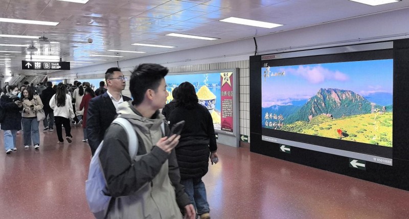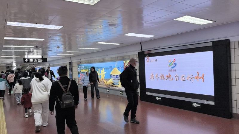 展区位于天安门地铁东、西两侧,覆盖来自全国各地的游客及国际友人。不少游客在大屏前停下脚步,用手机拍摄记录,来自重庆的游客李先生表示:“之前只知道五台山,没想到忻州还有这么多好地方,老牛湾看着太壮观了,下次一定要带家人来山西深度游。”
