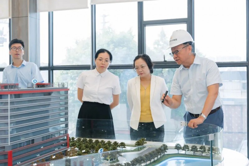 ▲广东耀东华集团董事长曾敏华(右)、副董事长吴惠仪(左)向里水镇政府党委书记邓秀娟(中)介绍耀东华科技产业园