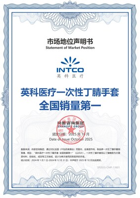 获得细分品类和全品类的全国销量第一认证,是英科医疗品牌实力的再次体现。英科医疗将继续发挥优势,深耕国内一次性手套市场,为行业的高质量发展贡献力量,持续守护人们的健康生活。