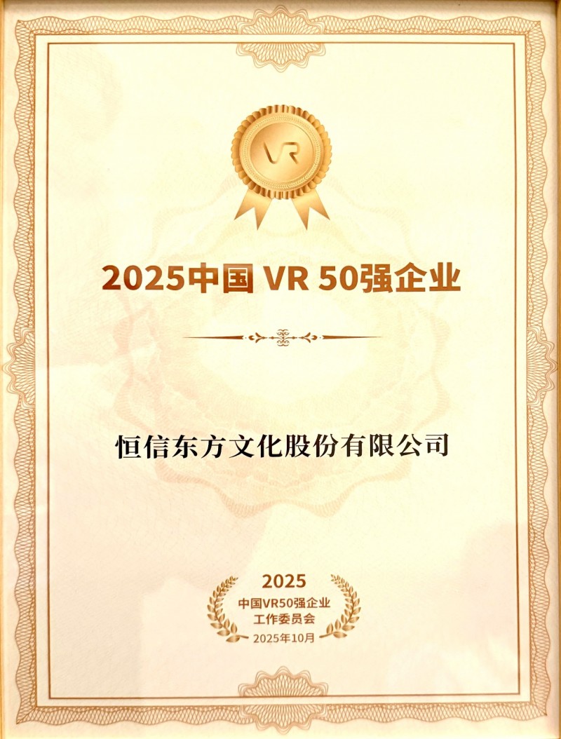 会上揭晓了“2025中国VR50强企业”名单,恒信东方凭借多年在虚拟现实领域的技术积淀,从全国众多优秀企业中脱颖而出,五度蝉联“中国VR50强企业”,其核心竞争力与未来发展潜力获得高度认可。