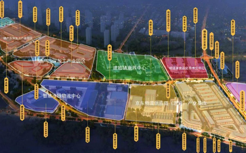 园区规划建设:以恩施州富硒农产品为特色产业基地,打造现代化的数智产业供应链园区,包括研发中心、电商中心、培训中心、检疫检验中心、农业大数据中心以及生产加工区、仓储物流区、智慧冷链区、展示交易区、综合办公配套区等,推动产学研融合,促进科技成果转换,以数字驱动和AI赋能上下游产业链,依托京斗云供应链优势将恩施硒产品,推广全国、畅销全国。