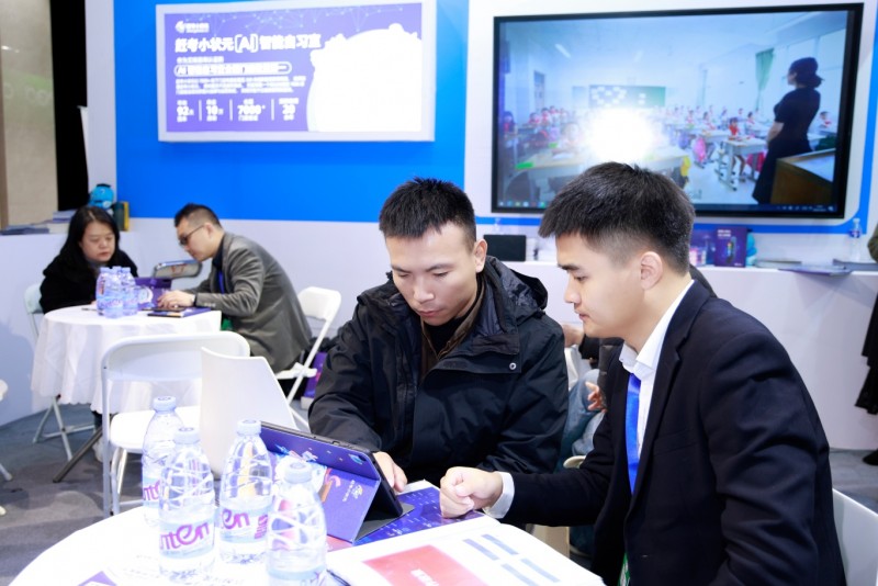 除了核心的AI智能自习室解决方案,展位还同步呈现了赶考小状元在教育科技领域的多维度布局。AI员工手机智能销售管理系统展示了其在教育机构数字化转型中的独特价值,从流量获取、内容创作到私域运营和成交转化,为教育机构提供了一套完整的智能管理方案。同时,人工智能进校园解决方案和赶考小状元启迪伴学系统【小D】等创新产品,共同构成了一个覆盖教、学、管、营全场景的智慧教育生态,展现出品牌在教育科技领域的深度思考和全面布局。