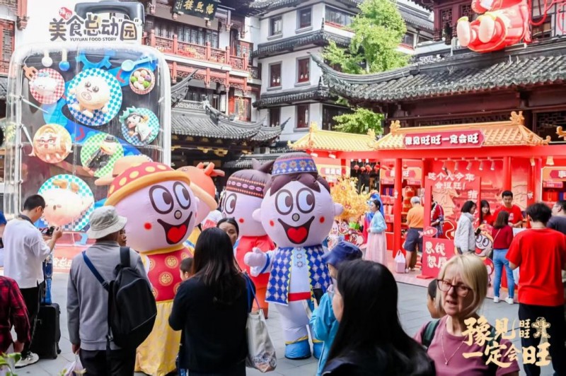 图:祈旺快闪店成为豫园人气一景,众多游客进店关注、打卡、互动和购买