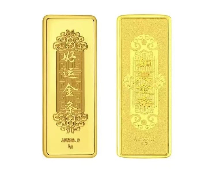 图:二等奖老庙黄金旺运小金条,上有颇受年轻人喜爱的“不发脾气,只发财”“财运旺旺”“好运连连“等祈旺字样,可爱风满满(1g左右,奖品以实物为准)